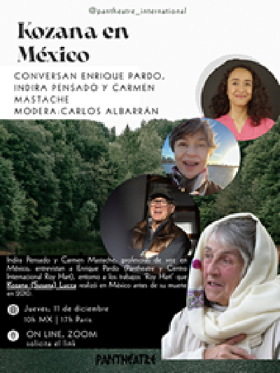 El 10 de diciembre 2025, tuvo lugar una entrevista en linea de Enrique Pardo por Indira Pensado y Carmen Mastache, artistas y profesoras de voz mexicanas – en torno al trabajo Roy Hart que realizó en México, Kozana Lucca, miembra del Roy Hart Theatre, y amiga colaboradora de Pantheatre, que falleció en 2010. Pueden ver la grabación video de la entrevista (recuesta EMAIL)